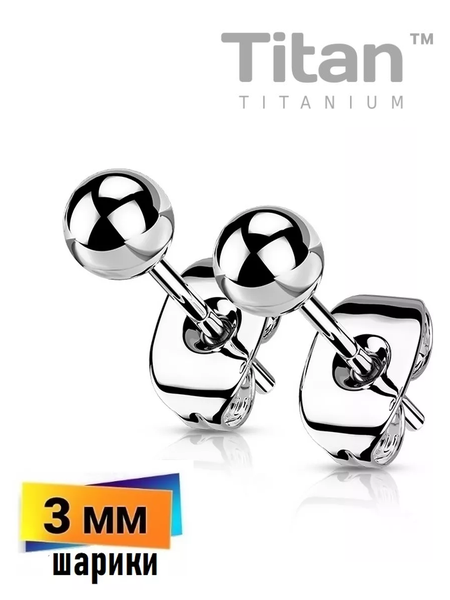 Серьги-гвоздики из имплантационного титана с шариками. Толщина 0,8 мм, диаметр шарика 3мм. SPIKES использует имплантационный титан марки Ti-6AL4V-ELi ASTM F-136 (класс 23).
