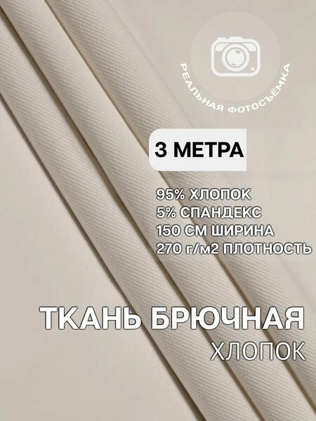 Материал С270 - котон диагональ (хлопковый твил). Брючная. Костюмная. Курточная. Мягкий и приятный к телу материал из натурального хлопка с диагональным рубчиком. Благодаря составу не вызывает раздражения и аллергии, позволяет коже «дышать» и не электризуется. Ткань обладает умеренной эластичностью, что обеспечивает комфортную посадку и сохранение формы изделия. Плотность материала делает его долговечным и устойчивым к деформации. Сфера применения: Идеально подходит для пошива брюк, юбок, платьев, костюмов и рубашек. Характеристики: • Состав: 95% хлопок, 5% спандекс • Ширина полотна: 151 см • Плотность: 270 г/м² • Тип: Хлопковый твил (диагональ) Важная информация о заказе: • Размер отреза: Точный размер выбранного вами отреза всегда указан в характеристиках товара. • Заказ нескольких отрезов: При заказе нескольких отрезов они будут отправлены отдельными кусками, а не цельным полотном. Если у вас остались вопросы, задайте их под карточкой товара — мы оперативно ответим!