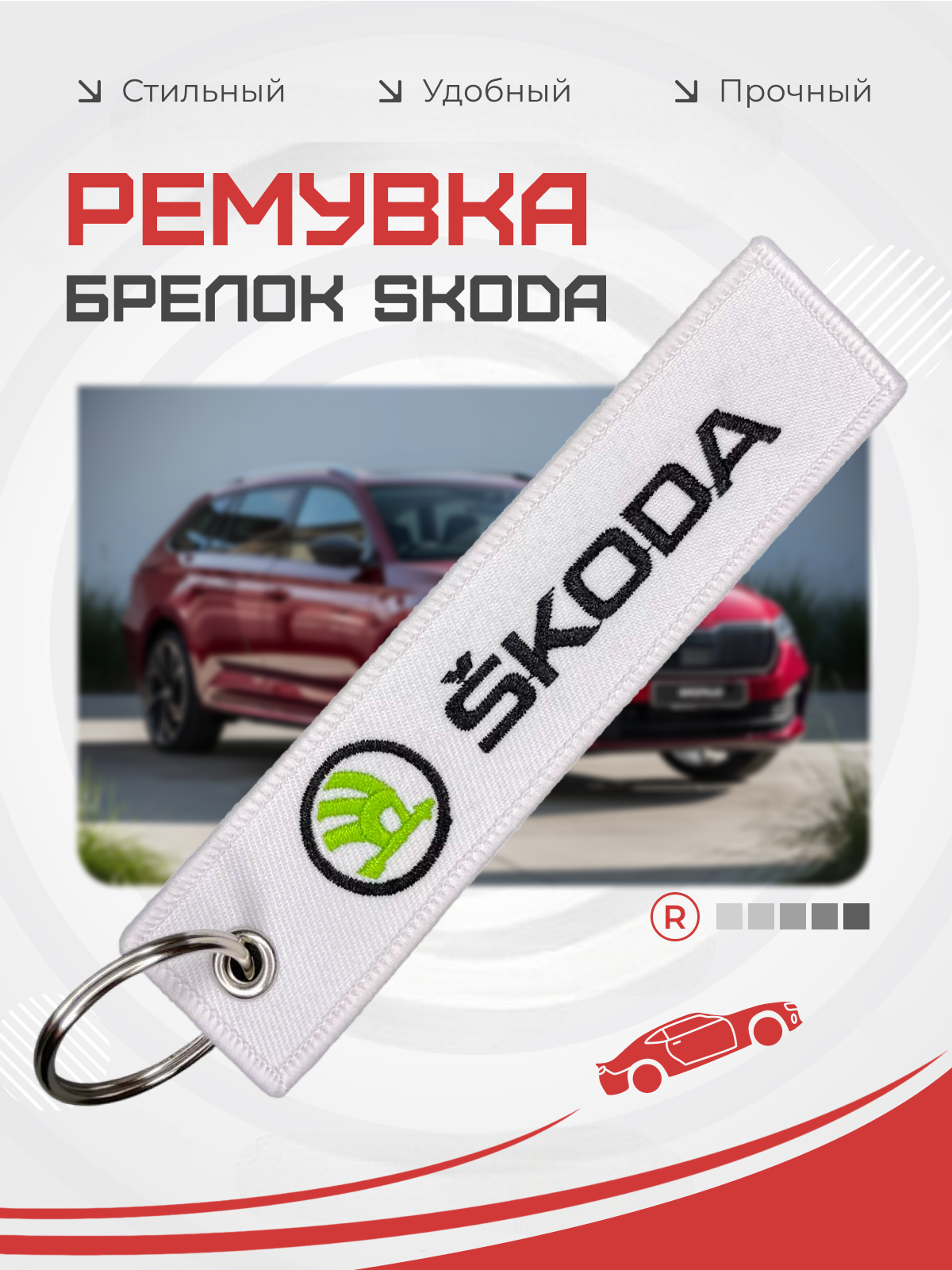 Тканевый брелок ремувка с контрастной белой вышивкой марки SKODA — это универсальный аксессуар, который сочетает стиль, практичность и оригинальность. Двухсторонний черный брелок изготовлен из прочной ткани, устойчивой к износу, и оснащен надежным металлическим кольцом, что делает его удобным в использовании каждый день. Такой брелок SKODA обеспечивает быстрый поиск ключей даже в большой сумке или рюкзаке, а лаконичный дизайн с фирменной вышивкой подчеркивает статус и вкус владельца. Брелок для ключей автомобиля SKODA идеально подойдет водителям и любителям бренда, которые хотят подчеркнуть свою связь с качественными европейскими авто. Он может использоваться не только для ключей от машины, но и для дома, офиса или как стильное украшение на рюкзак. Благодаря своей долговечности и презентабельному виду, тканевый брелок станет практичным подарком, оригинальным сувениром и полезным аксессуаром, который будет радовать владельца долгие годы. Брелок для машины SKODA — это удачное сочетание авто аксессуара и модного элемента, который подчеркивает индивидуальность и делает повседневное использование ключей удобнее.