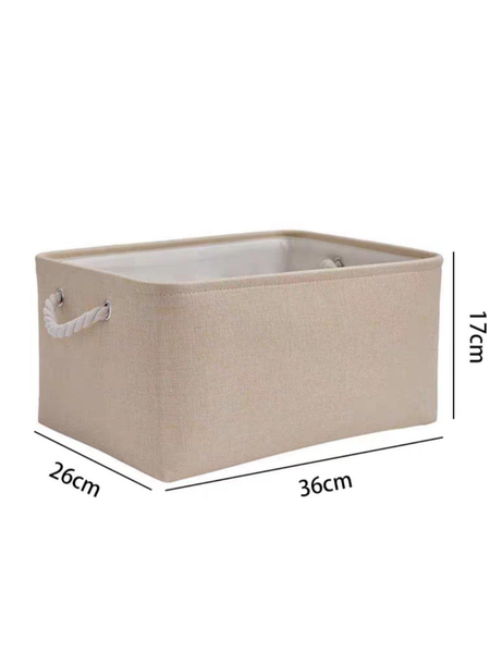 Удобное и стильное решение для поддержания порядка в доме! Тканевые органайзеры идеально подходят для хранения одежды, игрушек, косметики, аксессуаров и других мелких предметов. Изготовлены из плотного материала, имеют влагостойкое внутреннее покрытие и прочные верёвочные ручки по бокам, что делает их долговечными и практичными. Коробка легко складывается, поэтому не занимает много места при хранении. Доступно два размера: • Большой — 36 × 26 × 17 см • Малый — 32 × 23 × 13 см Материал: плотная ткань (канвас) Цвет: бежевый Внутреннее покрытие: влагостойкое Ручки: прочные верёвочные, по бокам Конструкция: складная, занимает минимум места
