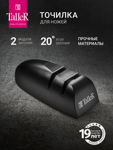 Точилка TalleR TR-62506 (TR-2506) Хардинг 2-х ступенчатая заточка. Угол заточки: 20º. Основание: рифленое. Нескользящее дно сделает заточку ножей максимально удобной и безопасной. Модуль заточки выполнен из сверхтвердого карбида вольфрама и покрыт алмазным напылением с абразивностью 360 грит. Модуль шлифовки выполнен из керамики с абразивностью 1200 грит. Для быстрой заточки ножа пропустите его сначала через модуль заточки (coarse), а затем через модуль шлифовки из керамики (fine). Угол наклона лезвия уже задан, что исключает возможность неправильной заточки. Для заточки используйте только чистые сухие ножи. Не используйте с волнистыми ножами. Рекомендуется ручная мойка.