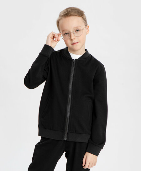 Черная трикотажная толстовка на молнии для мальчика от Button Blue. Модель выполнена из вискозы с добавлением нейлона и эластана. Изделие мягкое, максимально комфортное в носке, позволяет телу дышать. Актуальный свободный крой не сковывает движения. В таком бомбере будет удобно мальчикам с разным типом фигуры. Он выполнен с круглым вырезом горловины и длинными объемными рукавами. Горловина и манжеты оформлены эластичной рибаной. Ткань мягкая, гладкая и приятная к телу и на ощупь как снаружи, так и внутри. Распашная толстовка застегивается на молнию, поэтому ее легко и быстро снимать и надевать. С ней можно создавать многослойные образы без опаски, что ребенку будет жарко. Ведь кофту необязательно снимать в теплом помещении - достаточно просто расстегнуть. Классический черный цвет и отсутствие лишнего декора позволит с легкостью сочетать толстовку с любой школьной формой. В такой кофте мальчик может пойти как в школу, так и на прогулку, на уроки физкультуры или на природу с семьей. Удобные прорезные карманы позволят хранить все самые важные мелочи при себе и согреют руки. Следуйте рекомендациям по уходу, указанным на вшивной этикетке. Состав: 55% вискоза, 40% нейлон, 5% эластан