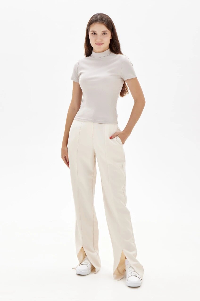 Базовый топ прилегающего кроя с горлом и короткими рукавами. Выполнен из приятного к телу хлопкового трикотажа. Станет отличным дополнением повседневных образов.