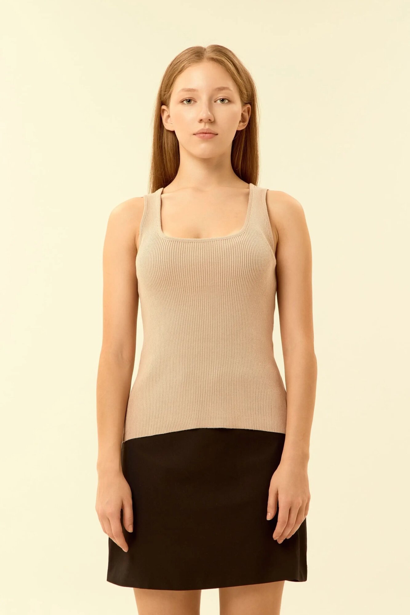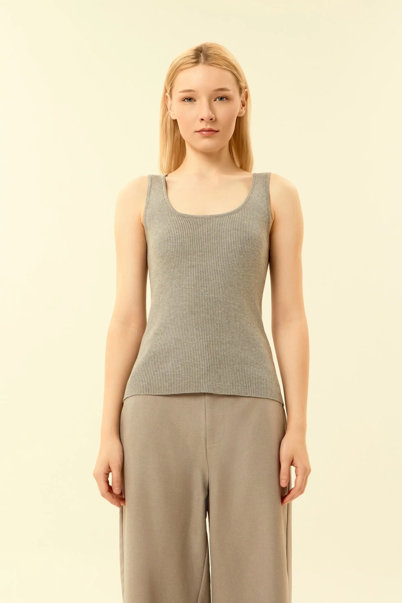 Топ с лаконичным дизайном, выполненный из эластичного трикотажа с мелким рубчиком. Прилегающий крой мягко повторяет линии фигуры, создавая аккуратный и универсальный силуэт. Широкие бретели и круглый вырез делают модель удобной и практичной для ежедневного использования. Благодаря эластичности ткани топ комфортен в движении и отлично держит форму даже после стирки. Такой вариант легко комбинируется с брюками, шортами или юбками, а также может служить базовым слоем под жакет или кардиган, создавая стильные и функциональные образы.
