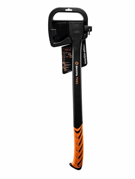 Топор-колун 600г, 73см Вихрь TК21 (L) 73/2/1/8. Топор-колун ТК21 (L) Вихрь предназначен для колки дров большого диаметра — от 20 до 30 см. Фиберглассовая рукоятка оснащена специальным покрытием. Оно предотвращает скольжение инструмента в руках, обеспечивая надежный хват и комфорт оператора даже при длительной работе. Конструкция рукоятки оптимально распределяет нагрузку, снижая усталость рук и предотвращая возникновение травм. Рабочая часть топора изготовлена из качественной закалённой стали. Она гарантирует длительную эксплуатацию инструмента без потери остроты режущего края. Колун легко выдерживает высокие нагрузки и способен раскалывать самые твердые породы древесины. Общий размер изделия составляет внушительные 730 мм, что позволяет эффективно обрабатывать крупные поленья и повышает удобство работы даже с большими объемами заготовленного топлива. Вес топорища — всего 1 кг, а масса рабочей части (без учета ручки) достигает 600 гр. Общий вес составляет 1.6 кг. Эти показатели обеспечивают оптимальный баланс между весом и мощностью удара, делая работу комфортной и эффективной.