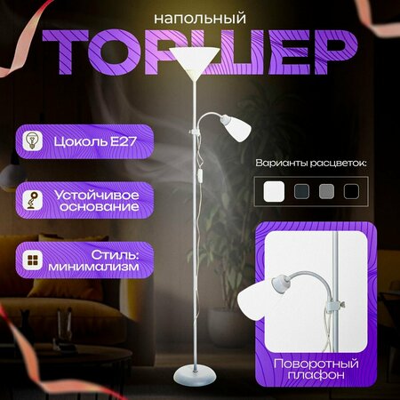 Торшер напольный в стиле лофт белый - это стильное и функциональное решение для вашего дома. Торшер выполнен в современном стиле минимализма, что позволяет ему легко вписаться в любой интерьер. Стойка торшера состоит из 4 металлических секций, что придает ему прочность и устойчивость. Длинный провод с переключателем на проводе обеспечивает удобство использования. Работает торшер от сети 220 Вт. Два белых плафона из эко-пластика, выполненные в форме конуса, подходят для ламп с цоколем Е27. Один из плафонов оснащен гибким держателем с регулировкой высоты и направления светового потока. Второй плафон - это классический белый софит. Основание торшера выполнено из металла, что гарантирует его долговечность и надежность. Торшер подойдет для разных стилей интерьера: классика, винтаж, арт-деко, кантри, прованс, хай-тек и других. Мягкое и теплое освещение светодиодных ламп не будет беспокоить ребенка во время сна. Торшер напольный в стиле лофт - это не только источник света, но и стильный элемент декора, который украсит ваш дом и создаст уютную атмосферу.
