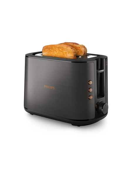 Полностью металлический тостер с самоцентрирующимся широким отверстием для равномерного подрумянивания независимо от толщины ломтика. Благодаря различным режимам подрумянивания и встроенной решетке для булочек вы сможете наслаждаться идеально хрустящими тостами, теплой выпечкой, булочками и сдобными булочками. 8 режимов поджаривания на любой вкус Отрегулируйте время поджаривания любого хлеба по своему вкусу. Режим размораживания Режим размораживания позволяет легко поджарить замороженный хлеб одним нажатием кнопки. Режим повторного нагрева Режим повторного подогрева разогревает ранее поджаренный хлеб за считанные секунды одним нажатием кнопки. Кнопка отмены Кнопка «Отмена» позволяет в любой момент остановить поджаривание. Высокий подъем для безопасного извлечения Эта функция позволяет безопасно поднимать небольшие куски хлеба. Дополнительная защита от автоматического отключения Дополнительная защита от автоматического отключения защищает изделие от короткого замыкания. Подставка для подогрева булочек Подставка для подогрева булочек и круассанов. Съемный поддон для крошек Легко чистить благодаря съемному поддону для крошек. Очень широкий слот Механизм самоцентрирования идеально центрирует каждый ломтик для равномерного поджаривания независимо от толщины.