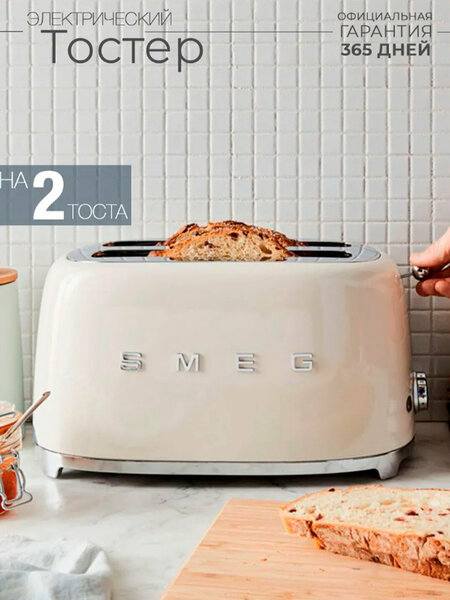 Описание: Элегантный тостер в стиле 50-х годов от итальянского бренда SMEG. Он сочетает стильный ретро-дизайн и надёжное качество. Благодаря 6 уровням поджаривания и функциям подогрева и разморозки, вы получите идеально хрустящие тосты каждый день. Преимущества: Ретро-дизайн 50’s Style — украшение любой кухни 6 уровней поджаривания Функции подогрева и разморозки Прочный металлический корпус Итальянское качество и долговечность