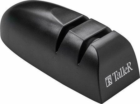 Точилка TalleR TR-62506 (TR-2506) Хардинг 2-х ступенчатая заточка. Угол заточки: 20º. Основание: рифленое. Нескользящее дно сделает заточку ножей максимально удобной и безопасной. Модуль заточки выполнен из сверхтвердого карбида вольфрама и покрыт алмазным напылением с абразивностью 360 грит. Модуль шлифовки выполнен из керамики с абразивностью 1200 грит. Для быстрой заточки ножа пропустите его сначала через модуль заточки (coarse), а затем через модуль шлифовки из керамики (fine). Угол наклона лезвия уже задан, что исключает возможность неправильной заточки. Для заточки используйте только чистые сухие ножи. Не используйте с волнистыми ножами. Рекомендуется ручная мойка.