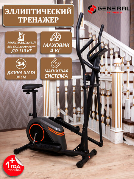 Эллиптический тренажёр General Fitness — это универсальное решение для домашних тренировок, сочетающее в себе кардио-нагрузку, укрепление мышц и бережное отношение к суставам. Тренажёр подходит как для начинающих, так и для пользователей с опытом, обеспечивая комфортные и эффективные занятия в любое время. Модель рассчитана на максимальный вес пользователя до 110 кг, что гарантирует надёжность и устойчивость конструкции. Маховик весом 4 кг обеспечивает плавный и равномерный ход без рывков, а магнитная система нагружения делает работу тренажёра практически бесшумной — вы можете тренироваться дома, не мешая окружающим. Тренажёр оснащён информативным LCD-дисплеем, на котором отображаются все основные параметры тренировки: время тренировки пройденная дистанция скорость количество сожжённых калорий пульс обороты в минуту Встроенные сенсорные датчики пульса позволяют контролировать сердечный ритм в режиме реального времени, а удобная подставка под телефон делает тренировки ещё комфортнее — вы можете смотреть видео или слушать музыку во время занятий. Эллиптический тренажёр эффективно прорабатывает мышцы ног, ягодиц, рук и корпуса, подходит для: кардиотренировок реабилитации после травм снижения веса и борьбы с целлюлитом поддержания общей физической формы дополнения к диете и активному образу жизни Тренажёр не требует подключения к электросети, что делает его максимально удобным в использовании и установке. Подходит для любого напольного покрытия и легко вписывается в интерьер дома или квартиры.