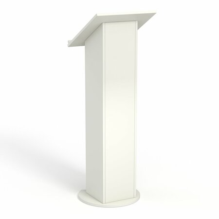 Конструкция оснащена столешницей с небольшим бортиком, где удобно расположить бумаги и другие материалы для выступления. Внутри имеется полка, где спикер может расположить материалы для выступления.