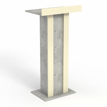 Конструкция оснащена столешницей перегородкой, за которой удобно расположить бумаги, микрофон и другие материалы для выступления. Внутри имеется полка, где можно расположить сопутствующие предметы для выступления.