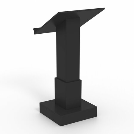 Изделие оснащено столешницей с выступом, где удобно разместить бумаги с текстом выступления. Внутри имеется полка, где спикер может расположить сопуствующие материалы для выступления или бутылку с водой.
