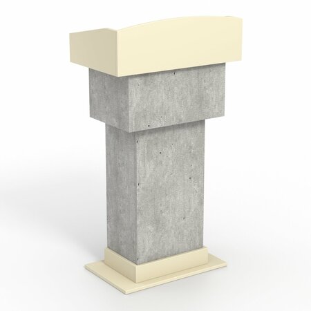 Изделие оснащено большой столешницей с высокими бортиками, где удобно разместить бумаги с текстом выступления, микрофон или бутылку с водой, а также опереться выступающему. Главной особенностью модели является наличие выдвижного ящика, где спикер может расположить материалы для выступления. Под ящиком также имеется полка.
