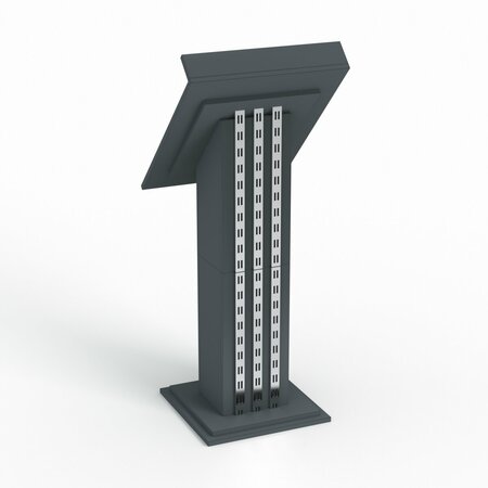 Трибуна для выступлений. Особенностью данной модели является то, что конструкция предусматривает наличие отверстий для проводов и кабелей. Это хорошо, если потребуется для выступления микрофон, электронный планшет или иная техника. Отличный вариант для лекций или проведения презентаций.