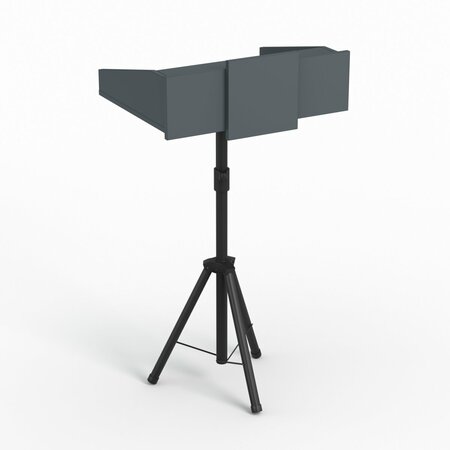 Трибуна телескопическая. Особенностью данной модели является то, что трибуна мобильная, ее можно использовать для переездов, легко разбирается и занимает мало места. Регулируется по высоте. Имеет столешницу с перегородкой, где удобно расположить материалы для выступлений. Трибуна имеет усиленную стальную конструкцию и надежную фиксацию. Можно нанести логотип или символики.