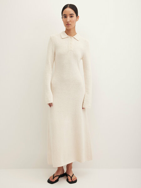 Трикотажное платье макси M от Chaika - это стильное и комфортное решение для летнего гардероба. Платье выполнено из 100% хлопка, что обеспечивает мягкость, дышащий эффект и приятные тактильные ощущения. Вязаный трикотаж гарантирует долговечность и сохранение формы изделия. Приталенный силуэт и воротник поло придают платью элегантность и женственность. Длинный расклешенный рукав и застежка на пуговицы добавляют удобства и практичности. Платье представлено в молочном цвете, который легко сочетается с различными аксессуарами и обувью. Уход за платьем прост: ручная стирка при температуре до 30°C с использованием мягких моющих средств или профессиональная чистка. Выбирая трикотажное платье макси M от Chaika, вы получаете стильное, комфортное и качественное изделие, которое станет отличным дополнением к вашему летнему гардеробу.