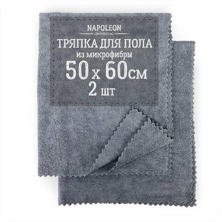 Тряпка для уборки пола из плотной микрофибры серый размер 50х60 см 2шт