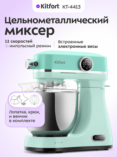 {"widgets":{"@card/BlockReviewsGalleryCardGallery":{"/content/page/fancyPage/defaultPage/reviewBlock/photos":{"wrapperProps":{"margins":{"top":2,"bottom":3}},"limit":12,"composeId":"176877105317127473","needScroll":true,"isDesktop":true,"size":"medium","mediaItemIds":["mi_4491445898999651471","mi_14202431880829096008","mi_9109496675911200895","mi_301576017848743116","mi_17277637884607592163","mi_7518682832390841899","mi_18270897892069284566"]}}},"meta":{"/content/page/fancyPage/defaultPage/reviewBlock/photos":{"name":"@card/BlockReviewsGalleryCardGallery"}},"collections":{"reviewItem":{"ri_420417062":{"reviewId":"420417062","author":{"nickname":"Валерия Габрава","avatarMediaItemId":"mi_9669885439464607715","isAnonymous":false,"publicId":"5ymxz911m9krc30653uk350krw","transition":{"type":"userPublicProfile","params":{"publicId":"5ymxz911m9krc30653uk350krw","title":"Валерия Габрава","isPreview":true}},"analyticsData":{"uid":"1595467339"},"isPublicProfile":false,"isMyProfile":false},"authorItem":"au_383471434906215574","rating":5,"reviewDate":"1763205492405","date":"15 ноября 2025","advantages":"Отлично подходит для замеса крутого теста для ржаного хлеба","disadvantages":"Коротковат кабель подключения (еще 30 см и было бы идеально)","commonText":"Редко пишу отзывы на купленные на маркетплейсах товары, но сейчас хочется это сделать))) Миксер Kitfort KT-4413 - это профессиональный девайс в пластиковом мире массмаркета. Цитируя классиков: \"Тяжесть - это хорошо, тяжесть - это надежно\". Есть вполне реальный шанс, что 10 кг металла прослужат дольше, чем хрупкий пластик. До этого у меня был миксер, в котором крепления насадок для замешивания были пластиковые, и они (кто бы сомневался) первые вышли из строя. А поскольку миксер мне нужен для замешивания крутого теста для ржаного хлеба, то для меня именно надежность стала главным фактором при выборе миксера. Замешивать можно долго, на максимуме можно ощутить небольшой нагрев от двигателя. Не вибрирует, шум минимальный. По дизайну подойдет в любую современную кухню.","media":["mi_4491445898999651471"],"fixId":420417062},"ri_428052470":{"reviewId":"428052470","author":{"nickname":"Паша Парасотченко","avatarMediaItemId":"mi_11150917582710425171","isAnonymous":false,"publicId":"gdam921wkt7aren97phq3p01jm","transition":{"type":"userPublicProfile","params":{"publicId":"gdam921wkt7aren97phq3p01jm","title":"Паша Парасотченко","isPreview":true}},"analyticsData":{"uid":"1530214442"},"isPublicProfile":false,"isMyProfile":false},"authorItem":"au_339338729276054018","rating":5,"reviewDate":"1767257264785","date":"1 января","advantages":"Пришло всё целое. В работе пока не пробовали. Выглядит очень многообещающе. Проверили, всё работает!! Цвет шикарный! В комплект идут 3 насадки!!! В миксер встроены часы, есть крышка от брызг!","disadvantages":"Нет, всё отлично!","commonText":"Очень рада данному приобретению!! Очень увесистый, видно, что крепкий! Присоски хорошо крепятся у столу! Проверили на работу, без продуктов все хорошо, буду проверять уже на зефире)\nЦвет просто бомбовый, нежный, не яркий, самое то!!! Есть специальный разъем для лапширезки, как дополнение просто круто! незаменимый помощник на кухне!!!","media":["mi_14202431880829096008","mi_9109496675911200895","mi_301576017848743116","mi_17277637884607592163","mi_7518682832390841899","mi_18270897892069284566"],"fixId":428052470}}}}