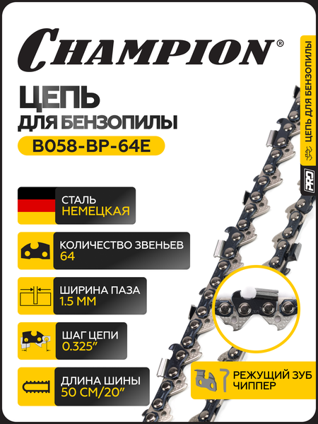 Цепь для бензопилы CHAMPION 325"-1,5mm- 64 PRO (BP) / цепь пильная