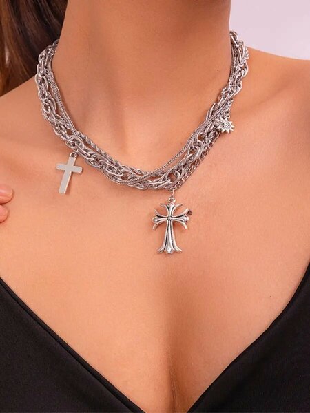 Цепочка чокер с готическим крестом - это популярный аксессуар для тех, кто хочет подчеркнуть свою индивидуальность и стиль. Это стильный и универсальный дизайн, который подойдет как для мужчин, так и для женщин. Размер цепочки 39 + 5 см, что позволяет выбрать оптимальный размер для каждого человека. Она выполнена из нержавеющей стали, что делает ее прочной и долговечной. Цвет цепочки - серебро и серый, что придает ей элегантный и современный вид. Цепочка чокер имеет форму креста в готическом стиле и украшена маленькими серебряными крестами. Это создает эффектный и необычный вид. Преимущества этого товара очевидны: он стильный, прочный и универсальный. Он подойдет для любого случая и поможет создать неповторимый образ.