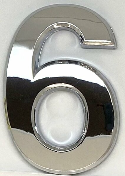 Цифра дверная "6" самоклеящаяся 70х45 мм. хром / Номер квартиры / Номер дверной на клеевой основе