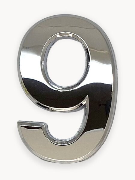 Цифра дверная "9" самоклеящаяся 70х45 мм. хром / Номер квартиры / Номер дверной на клеевой основе
