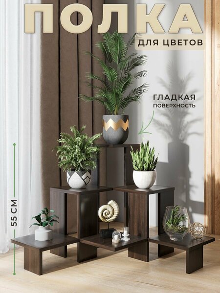 Напольная цветочница из ЛДСП -многофункциональная полка, она является лучшим решением для вашего дома. Эта подставка для цветов из дерева станет очень практичным элементом интерьера. Она поможет вам организовать пространство, сделает его более функциональным и удобным. Кроме того, цветы на подставке не только украсят ваши комнаты, но и создадут приятную и уютную атмосферу. Деревянные полки для цветов выглядят стильно и красиво. Угловая напольная полка для цветов используется не только для растений, но и как стеллаж для книг, косметики, фотографий и многого другого. Наша деревянная полка для растений изготовлена только из экологически чистых материалов, используется ЛДСП класса Е1. Мебель из ламинированного ДСП не боится перепадов температур, что позволяет использовать подставку как внутри, так и на открытых террасах, балконах или беседках. Стеллаж цветочница позволит эффективно использовать площадь помещения. Двухуровневая система расположения включает шесть (6) вместительных полок. Эти подставки для горшков, позволят реализовать самые смелые решения. Высота модели 55 см , размер полки 23 см на 23 см, ширина цветочницы 67,5 см. Несмотря на свои не крупные размеры наша полочка выдерживает 115 КГ! Дайте вашим цветам особое место, подарив им достойное оформление с помощью нашей деревянной полки подставки для комнатных растений.