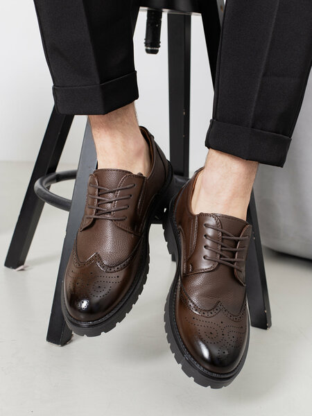 Мужские классические туфли коричневого цвета. Сочетание высококачественной искусственной кожи, классического кроя с легкой полиуретановой подошвой подойдут для ежедневного делового стиля. Это классические броги с узнаваемым декоративным элементом данной модели — эксклюзивное тиснение. Конструкция мужской обуви дерби с открытой шнуровкой. К особенностям пары можно добавить интересную зернистую рельефную фактуру, под телячью кожу, применяемую при пошиве верха. Эти туфли будут уместно смотреться при ежедневной носки в офис или школу. Лаконичный дизайн таких туфель — прекрасная инвестиция в гардероб. Лёгкая и гибкая полиуретановая подошва обладает амортизирующим эффектом. Классические офисные полуботинки на шнурках с закрытой пяткой. Лоферы классические мужские летние на шнуровке настолько универсальный, что подойдут как для сменки в школе, так и для вечеринок в университете. Их можно использовать как свадебные туфли для жениха или просто под любой праздник. Устойчивый каблук и качественная легкая полиуретановая подошва делают эту обувь оптимальной для любой ситуации: она отлично подойдет как для офиса, так и для прогулок в парке. Узор брогирование – отличный выбор для свадебной церемонии, на Новый год, корпоратив, выпускного вечера или любого другого праздничного мероприятия. Черные туфли классические мужские весенние на шнуровке настолько универсальны, что подойдут как для сменки в школе, так и для вечеринок в университете. Добавляйте MAD MAN в любимые бренды и узнавайте первыми о новинках, акциях, распродажах и скидках.