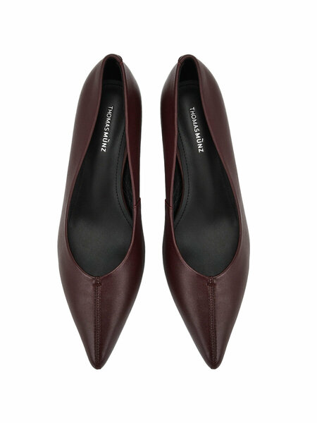 Туфли женские натуральная кожа летние и демисезонные дышащие с острым носом выполнены в стиле лодочки на низкой подошве 0,3 см и среднем каблуке шпильке 5,5 см. Классические туфли с закрытым носом и закрытой пяткой комфортны для улицы и в помещении. Весенние и осенние дышащие туфли на шпильке пригодятся как основная или вторая обувь на лето, сменка для работы, на праздник 8 марта и новый год. Остроносые кожаные натуральные туфли на тонком каблуке классика подходят для повседневной носки, в театр, для танцев на вечеринке. Удобные повседневные, праздничные или вечерние лодочки на невысоком каблуке для взрослых женщин и подростков девушек дополнят любой образ и наряд, подходят под юбку, платье, брюки. Стильные темные женские или молодежные закрытые туфли на небольшом каблуке без застежек могут пригодиться как сменная обувь для офиса и в школу на зиму. Рабочие офисные женские туфли на каблуке выглядят изящно. Легкие и мягкие танцевальные и школьные туфли с закрытым носком демисезон лето для девушки и подростка девочки незаменимы на выпускной, последний звонок и другое торжество. Красивые женские и подростковые туфли весна осень на тонкой подошве легко сочетаются с нарядной и повседневной одеждой. Подходит эта брендовая обувь как свадебные туфли для подружек невесты на свадьбу и девичник. Модные бордовые туфли на черной подошве дополнены качественной фурнитурой. Изготовлены элегантные туфли из натуральной кожи шевро бордового цвета, мягкой и дышащей. Подкладка и стелька из натуральной кожи черного цвета. Стелька с эффектом памяти Munz Memory препятствует усталости ног. Подошва из резины износостойкая, с высокими противоскользящими свойствами. Каблук крашеный, с набойкой. Женская обувь Томас Мюнц полноты 4 комфортна на узкую ногу и средней обычной полноты, не склонную к отеканию. Высота голенища 5,5 см. Температурный режим для комфорта ног не ниже плюс 10. Вес пары около 727 гр. Размерную сетку см. в фотографиях.