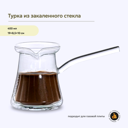 ! При использовании на индукционной плите используйте индукционный диск! Ручка нагревается, рекомендуем браться за нее прихваткой. Турка из закаленного стекла объемом 400 мл идеальный выбор для тех, кто ищет простой и стильный способ приготовления горячих напитков. Его классическая форма позволяет легко разливать по чашкам кофе чай и другие напитки, а ручка обеспечивает надежный захват. Конструкция из закаленного стекла обеспечивает долговечность и простоту очистки. Вы можете использовать его для подогрева чая, молока или даже приготовления глазури. Благодаря минималистичному дизайну и удобному размеру мейкер из закаленного стекла объемом 400 мл обязательно станет любимым на любой кухне. Стеклянная турка прозрачная джезва термостойкая посуда и инвентарь кофейник стеклянный многофункциональная универсальная соусник молочник подарок бабушке маме любимой папе дедушке внуку внучке коллеге начальнику любимому учителю жене мужу брату сестре подруге другу сувенир