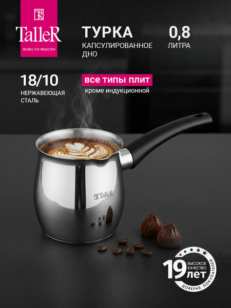Достоинства:размер то что нужно, качество, стоимость Недостатки:нет Комментарий:я искала такую посуду, в которой можно сварить пару яиц, погреть чай оставший т.к. с маленьким ребёнком редко удаётся попить его во время горячим, сварить какао на двоих в нормально размера кружки по 250 мл каждую, а также мне нужна была ручка как у ковшика, и носик для переливания жидкостей, я много смотрела хороших ковшиков нужного мне размера, но они все были без носика, поэтому ковшик не купила, а вот эта чудо турка самое то 👍 фирмой TALLER пользуюсь очень давно, она себя проверила за 15 лет пользования кострюльками и не только.