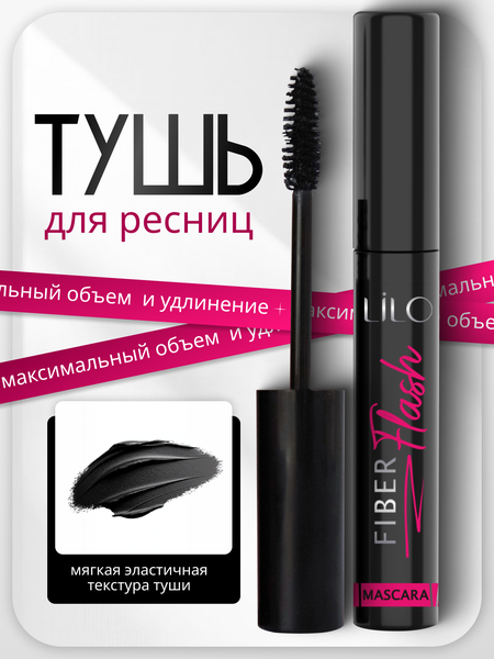 Тушь для ресниц FIBER FLASH: максимальное удлинение и объем Тушь для ресниц FIBER FLASH от известного белорусского бренда Lilo обеспечивает максимальное удлинение и объем ресниц с первого слоя. Благодаря файберовым волокнам макси-щеточки, ресницы приобретают восхитительную длину и невероятный объем одним жестом. Тушь имеет кремовую текстуру и прямую форму щеточки из фибры, что обеспечивает равномерное нанесение и равномерное распределение продукта по ресницам. Тушь FIBER FLASH на водной основе, что делает ее легкой для нанесения и удаления. В составе туши отсутствуют силиконы и парабены, что делает ее безопасной для использования. Тушь для ресниц FIBER FLASH представлена в черном цвете и имеет удобную упаковку-флакон объемом 9 мл. Способ применения: нанесите необходимое количество туши на ресницы с помощью щеточки. Тушь для ресниц FIBER FLASH – это отличный выбор для тех, кто хочет придать своим ресницам максимальное удлинение и объем с первого слоя.