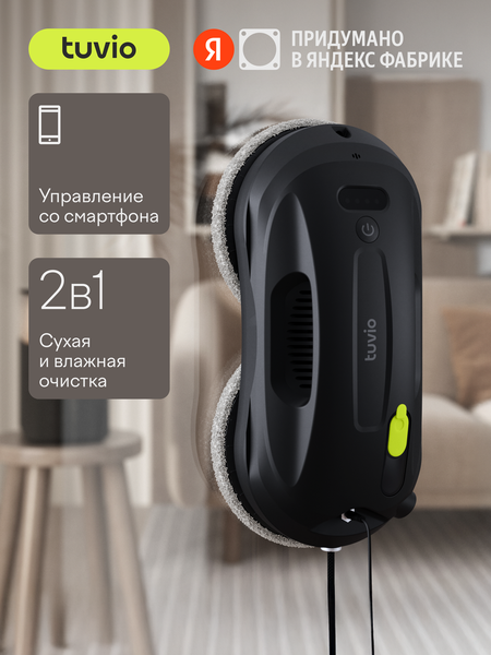 Tuvio — это бренд удобной бытовой техники, придуманный в Яндексе. ㅤ Робот-мойщик окон Tuvio TWR01W подходит для влажной и сухой очистки гладких вертикальных поверхностей: окон, зеркал и кафельной плитки. Устройство прочно крепится и надёжно держится благодаря высокой силе всасывания — 3000 Па. ㅤ Робот легко справляется как с повседневной уборкой, так и с более стойкими загрязнениями. Скорость очистки — 4 мин/м². С функцией автоподачи жидкости не требуется вручную увлажнять поверхность для очистки — прибор самостоятельно распылит воду или моющее средство. В комплект входят дополнительные насадки из микрофибры. Мягкий материал бережно и тщательно очищает поверхность, не оставляет разводов. ㅤ Настраивать работу устройства легко через приложение на смартфоне или при помощи пульта дистанционного управления. Можно выбрать один из трёх автоматических режимов с разными направлениями движения. ㅤ Робот-мойщик работает от сети, длина провода — 4,5 м. Благодаря режиму резервного питания при отключении электричества устройство остаётся на поверхности до 20 минут. Длинный страховочный трос — 4 м — обеспечит дополнительную защиту от падений. ㅤ В Tuvio можно купить оригинальные сменные комплектующие для роботов-мойщиков окон.