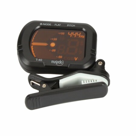 Musedo T-40 - тюнер для настройки гитары, баса, скрипки, укулеле. Имеет 6 режимов настройки. Реагирует на вибрацию грифа, что позволяет настраивать инструменты во время концертов на шумной сцене. Тюнер Musedo Т-40 имеет большой цветной LCD дисплей, вра .