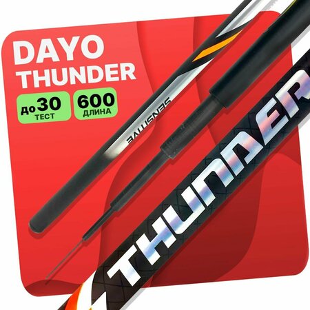 Маховая удочка - это поплавочная удочка без колец с глухим креплением лески к кончику удилища. Маховые удочки имеют широкую функциональность, позволяя заниматься различными видами ловли в самых разных условиях. Удилище маховое DAYO THUNDER Длина удилища составляет 600см, а вес 250гр. Транспортировочная длина 132см. Тест 10-30г. Материал бланка Carbon. Кол-во секций 6. Строй Fast (быстрый) Выделяют три разновидности маховых удилищ : Классическое маховое удилище, его длинна от 5 до 11 метров. Им преимущественно ловят рыбу среднего размера. Облегченное маховое, его длинна от 2 до 4 метров, для ловли мелкой и средней рыбы. Карповые маховые удилища, они более прочные, длинной от 7 до 14 метров. Предназначены для ловли крупной рыбы. Оптимальной длиной маха следует считать 7 метров. С помощью такой удочки вы сможете полноценно облавливать прибрежную зону на дистанциях от 5 до 11 метров. Если хорошо освоить технику ловли данным махом, то впоследствии можно приобрести модель длиной 9 метров. Маховые удилища имеют медленный, средний и быстрый строй. Понятие медленный обозначает, что удочка мягкая и предназначена для деликатной ловли. Она хорошо вяжет рыбу и предназначена для ловли на близких дистанциях. Делать дальние забросы такими удилищами не всегда легко. Среднего строя считаются более универсальными. Если есть сомнения в выборе, то лучше приобрести такие модели. Удилища с быстрым строем имеют жесткий бланк. Они адаптированы для дальних забросов. С их помощью легко облавливать отдаленные участки. Броски получаются точными даже в ветреную погоду. Но есть и определенный минус в таких удилищах. Они не всегда позволяют работать с тонкими оснастками. При мощных рывках рыбы случаются обрывы поводка и основной лески. Не всегда бланк амортизирует рывки, и могут происходить сходы. Для решивших приобрести свое первое маховое удилище, можно порекомендовать следующий вариант. Удочка на 7 метров и весом 250-300 грамм с тестом 3-15г. среднего строя. Маховое удилище не оснащается кольцами, а леска крепится к вершинке с помощью коннектора. Сама оснастка состоит из основной лески, поплавка, грузила и поводка с крючком. Можно приготовить несколько поводков с разными крючками. Поплавок прикрепляют так, чтобы он был хорошо заметен и обеспечивал нужную глубину погружения крючка. Его прикрепляют, продевая леску через имеющиеся на нём колечки. Положение фиксируют при помощи кембриков. Некоторые рыболовы оснастки делают заранее и берут с собой. Это удобно, чтобы не тратить время на рыбалке. Их перевозят намотанными на мотовила. Чтобы знать, где какие, на них фломастером надписывают нужную информацию. Маховая удочка может использоваться для ловли в стоячей воде или на течении. В стоячей воде можно использовать более лёгкие грузило и поплавок. Поводок должен быть тоньше основной лески, так как в ином случае рыба сразу его почувствует. Некоторые рыбаки сознательно предпочитают маховую удочку всем остальным. Для начинающих привлекательна простота освоения этой снасти. Новичкам можно порекомендовать маховые удилища длиной 6-7 метров. С их помощью вы сможете быстро научиться точно забрасывать в различные точки. Эти модели используются для ужения уклейки, плотвы и красноперки, обитающих на расстоянии 4-7 метров от берега. Такими удилищами удобно рыбачить в быстром темпе, когда время меж