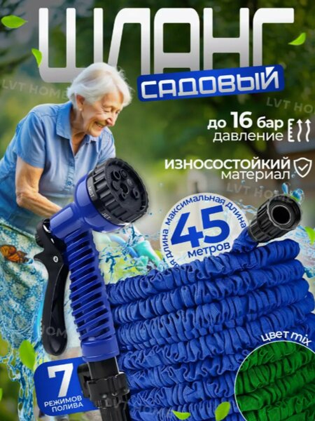 Садовый шланг с трехкратным удлинителем. Достойный выбор для каждого дома или двора. В основном его используют для полива сада, т. е. для опрыскивания водой фруктовых и ландшафтных деревьев, цветов и двора, для снижения уровня пыли, для мытья ковров и автомобилей. Этот чудо-шланг представляет собой расширяемый шланг, который автоматически увеличивается в 3 раза от своей первоначальной длины при включении воды и автоматически сжимается до первоначальной длины при выключении воды. Растягивающийся шланг чрезвычайно легкий и избавляет от необходимости использовать громоздкие обычные шланги. Пожалуйста, прочтите всю важную информацию ниже, прежде чем использовать этот шланг! 1) Перед использованием присоедините пистолет к шлангу. Это предотвращает проливание воды. При первом использовании расширяемого шланга рекомендуется сначала наполнить и растянуть шланг, а затем слегка растянуть его, чтобы ослабить герметичность внешней сложенной материальной оболочки. Затем слейте и залейте для нормального использования. 2) Прикрепите часть этого шланга к крану или смесителю в вашем доме. 3) Откройте кран, чтобы пустить воду. Постепенно увеличивайте напор воды. Удлиняемый шланг автоматически увеличивается в три раза по сравнению с первоначальной длиной. 4) Теперь вы можете использовать удлинительный шланг как обычный шланг. 5) После того, как вы закончите пользоваться удлинительным шлангом, перекройте воду в кране. Этот шланг предназначен для регулярного использования. Не используйте этот шланг для горячей воды. Не оставляйте воду открытой и шланг под давлением, когда он не используется. Храните в тени, когда не используете. Защитите шланг от замерзания в суровую зимнюю погоду, осушив его и храня в помещении. Вода из этого шланга не предназначена для питья! Сделано в Китае.