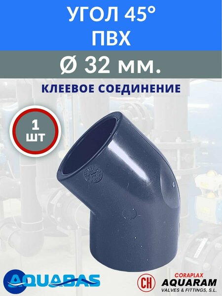 Угол ПВХ 45 градусов D32 клеевой - 1 шт