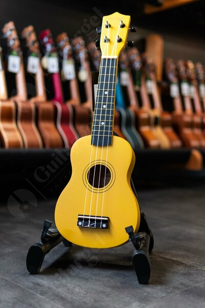Размер: сопрано. Верхняя дека: липа. Задняя дека и обечайка: липа. Накладка грифа: ламинат древесины. Бридж: пластик. Цвет: жёлтый.