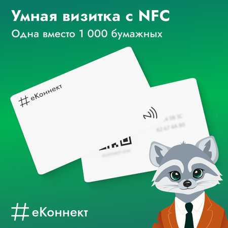 Бесконечная цифровая визитка Еконнект является отличным атрибутом делового человека. Smart-визитка имеет стандартные размеры банковской карты 85х55мм и легко помещается в бумажник или карман. С её помощью можно в одно касание передать контактные данные своему собеседнику (NFC-технология или QR-код). Социальные сети, номер телефона, почта и другие сервисы в одно касание у нового друга! Карта уже запрограммирована, но её нужно активировать. Алгоритм активации карты: 1. Приложить визитку к телефону / отсканировать QR-код 2. Зарегистрировать свой email и ввести пароль (это действие нужно выполнить один раз, затем при прикладывании будет открываться ваш электронный профиль) 3. Заполнить свой профиль контактной информацией (ФИО, телефоны, почты, ссылки на социальные сети и сайты) 4. Наслаждаться использованием умной визитки и делиться своей информацией за одну секунду! В тариф "Вечный" входит вечная подписка на сервис econnect. Оплачивать подписку никогда не понадобиться, вы можете покупать долпонительные визитки с новыми стильными и модными дизайнами и подключать их на этот же тариф. Умная визитка будет отличным подарком на Новый Год, Рождество, 23 февраля и 8 Марта, а также отличный вариант для корпоративов и сюрпризов коллегам. Знакомься! Делись! Удивляй!