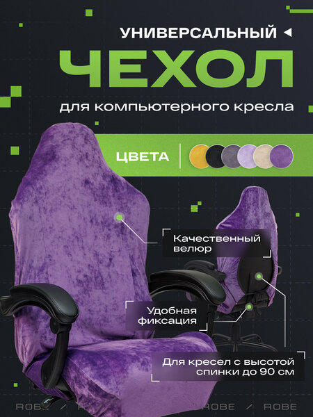 ROBE – это универсальный чехол для компьютерного кресла, который защитит ваше кресло от вас, а вас от вашего кресла! Чехол ROBE создан для того, чтобы ваше тело НЕ потело от длительного соприкосновения с эко-кожей. ROBE создан для того, чтобы кресло не забивалось крошками и пылью, а поверхность не загрязнялась, что особенно важно для светлых оттенков эко-кожи. Чехол изготовлен из премиальной ткани и приятен тактильно. Легко стирается и прекрасно сохраняет свою форму и внешний вид.