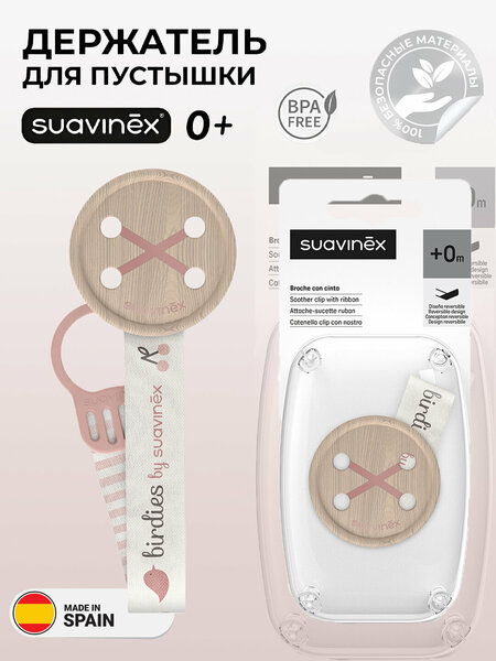 Suavinex berdies - это высококачественный держатель для соски-пустышки, который обеспечивает комфорт и безопасность вашему малышу. Suavinex berdies изготовлен из безопасных и прочных материалов, что гарантирует долговечность и надежность использования. Держатель Suavinex berdies легко и надежно крепится к любой поверхности, будь то стол, коляска или кроватка. Это позволяет вам всегда иметь доступ к пустышке, не беспокоясь о том, что она может упасть или потеряться. Благодаря своему дизайну, Suavinex berdies обеспечивает правильное положение соски-пустышки во рту ребенка. Это помогает предотвратить возможные проблемы с прикусом и здоровьем полости рта малыша. Выбирая Suavinex berdies, вы делаете ставку на качество, безопасность и удобство для своего малыша.