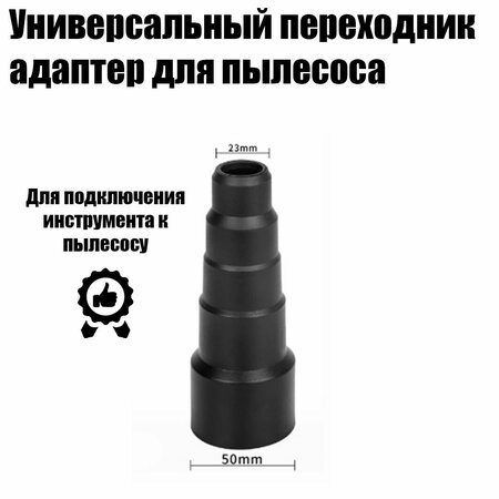 Адаптер-переходник для пылесоса: удобство и надежность Адаптер-переходник для пылесоса предназначен для подключения инструмента к пылесосу. Он изготовлен из высококачественного мягкой резины, который устойчив к деформации и пригоден для подгонки соединения. Благодаря этому, адаптер обеспечивает надежное и прочное крепление инструмента к шлангу пылесоса. Адаптер-переходник подходит для всех популярных диаметров шлангов: от 23 до 50 мм. Это позволяет использовать его в различных ситуациях, будь то дома, в гараже или мастерской. Адаптер-переходник имеет вес всего 47 грамм, что делает его легким и удобным в использовании. Выбирая адаптер-переходник для пылесоса, вы получаете надежный и удобный аксессуар, который станет незаменимым помощником в вашем доме, гараже или мастерской.