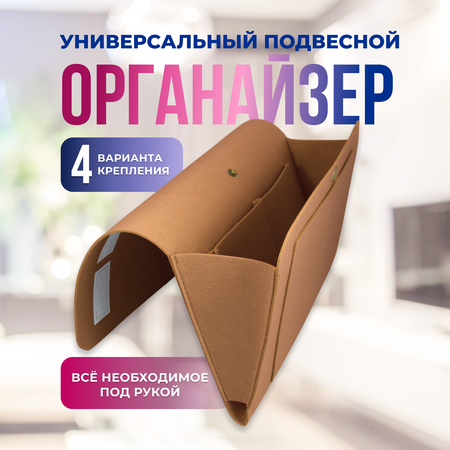 Органайзер для хранения–отличная альтернатива громоздким тумбам. Подвесной органайзер, станет верным помощником в быту. Карман из войлока с отсеками экономит полезное пространство. Для эффективного использования полезного пространства есть возможность закрыть органайзер для мелочей и придать ему более компактный вид с помощью кнопки. Органайзер на липучке подвесной имеет минималистичный дизайн, органично дополняя интерьер любого жилого пространства. Можно использовать органайзер для ванной или туалета, повестить органайзер на кресло или диван в гостиной или на кроватку в детской. Закрепить навесной органайзер можно 4-мя способами, как показано на фото в карточке товара. Сбоку от матраса, на поручне, спинке стула при помощи специального фиксатора-липучки или приклеить органайзер на стену, используя клеевую ленту, входящую в комплект. При помощи специальных липучек органайзер прикроватный подвесной можно зафиксировать на необходимой горизонтальной или вертикальной гладкой поверхности как показано в инструкции по применению спец. липучек на фото в карточке товара. Также подвесной органайзер для хранения с кармашками удобно размещать на тумбочке, придавив тяжелым предметом, например стопкой книг. Конструкцией войлочного прикроватного органайзера предусмотрено два боковых отверстия для провода зарядного устройства. Заряжайте свой телефон прямо в органайзере прикроватном. Органайзер подвесной из искусственного войлока гипоаллергенный и не впитывает посторонние запахи. Органайзер для ванной настенный не боится влаги и перепадов температур. Можете разместить его в ванной или кухне. Загрязнившийся настенный органайзер можно постирать вручную в теплой воде. Мягкая основа не портит мебель, органайзер на подлокотник убережет членов семьи от случайных травм, что важно для семей с детьми. Если в процессе транспортировки появились заломы, то первозданный вид органайзеру для пультов можно придать при помощи фена. Используйте самый горячий воздух и все заломы исчезнут. Мы убеждены, что порядок в вашем доме – залог счастья и процветания. Поэтому все органайзеры для хранения подвесные созданы кропотливо и с любовью.