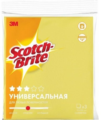 Мягкий и долговечный материал - вискоза, прекрасно впитывает и быстро высыхает. Возможно использование с бытовыми моющими средствами. Подходит для ежедневного использования. Мягкий и долговечный материал: вискоза - 70%, полиэстер - 20%, полиэфирное волокно - 10%. Легко полоскать и отжимать, возможна стирка при 60 °С. Материал: вискоза. Серия: Оптима. Применение: универсальное. Количество в упаковке: 3 шт Плотность: 90 г/м2. Длина: 32 см. Ширина: 38 см. Цвет: жёлтый. Упаковка: пакет Бренд - SCOTCH-BRITE.