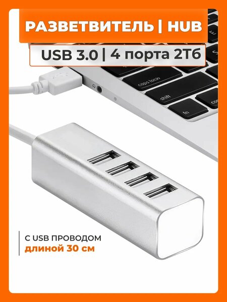USB Hub 3.0 на 4 порта c проводом 30 см для дисков до 2 Тб, адаптер для USB проводов, переходник для USB девайсов, хаб для ноутбука