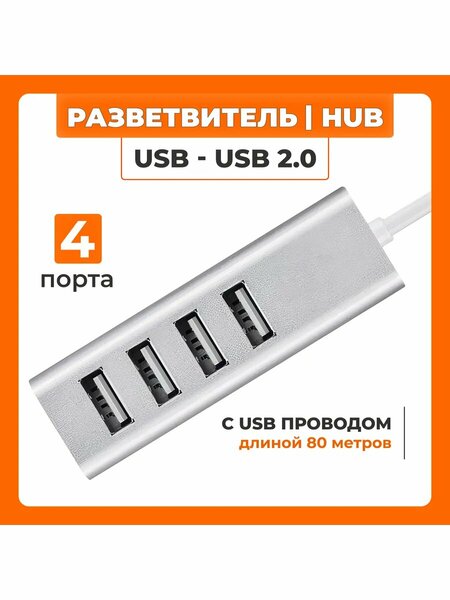 USB Hub 3.0 разветвитель на 4 порта с длинным проводом 80 см - предназначен для подключения нескольких устройств одновременно к компьютеру, стоящему под столом или на стойке. USB-концентратор с 4 портами предназначен для подключения к компьютеру флешек, дисков, мышки и клавиатуры. В хабе есть 4 порта с интерфейсом USB 3.0 , поддерживающего скорость передачи данных до 5 Гб в секунду. Длина кабеля - 80 см. Это универсальное решение для тех людей, которые пользуются множеством кабелей и большим количеством техники. USB порт с питанием подсоединяется к ноутбуку, компьютеру и даже блоку зарядки, что помогает одновременно восполнять емкость аккумулятора в нескольких смартфонах, переносить файлы. Гаджет выполнен из качественного алюминия. Благодаря этому USB-хаб выдерживает частое использование без механических повреждений. Переходник USB с питанием для компьютера — это также защита от перенапряжения, фильтрация помех и шумов. USB хаб — незаменимое устройство для всех, кто хоть как-то связан с компьютерами. Аксессуар для ноутбука пригодится в любой ситуации. Теперь возможно работать одновременно с несколькими флешками, принтером и заряжать устройства.