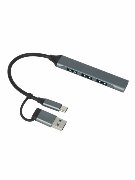 USB-хаб «Link» с коннектором 2-в-1 USB-C и USB-A, 2.0/3.0, цвет серый