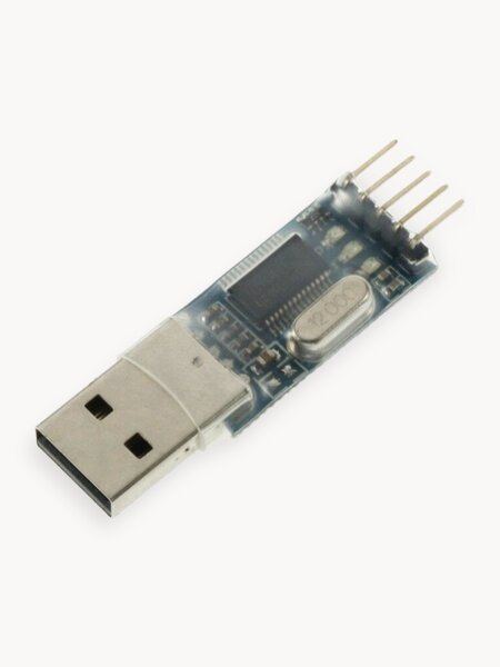 USB-TTL конвертер на основе интерфейсного контроллера PL-2303HX. Аппаратный полный дуплекс с независимыми буферами приема/отправки. Выходной разъем имеет 5 выводов (5 pin). Поддерживаются логические уровни 3.3 В и 5 В. Питание осуществляется через USB порт. Имеется светодиодная индикация последовательного соединения (Rx/Tx). Используется для внутрисхемного программирования микроконтроллеров, ПЗУ/флэш микросхем.
