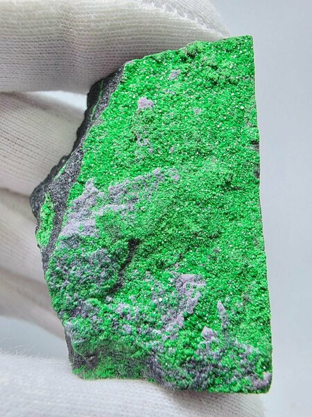 Мелкокристаллическая щетка уваровита. Размер 50х33х13 мм; вес 57 г. Уже одним своим внешним видом заявляет о своей загадочности и таинственных свойствах, поскольку минерал изумрудно-зеленого цвета является разновидностью красного граната. Главное Сарановское (Cr) месторождение, Пермский край. Изумрудно-зеленый мелкий гранат, ярко-зеленый цвет которого обеспечивается примесью хрома (окрашен как изумруд). Очень редкий. Крупные кристаллы неизвестны, минерал используется в изделиях в виде щеток и маленьких друз. Травянисто-зеленый цвет уваровита обусловлен соединениями хрома, поэтому уваровит является благородным зеленым гранатом. Уваровит относится скорее к коллекционным, а не к ювелирным минералам. Его природная красота и совершенство граней и форм не нуждается ни в какой огранке. Оценивают уваровиты обычно на квадратные сантиметры (по площади). Магические свойства: Развивают интуицию и предвидение. Уваровит способствует накоплению материальных богатств, но так как это камень чести и долга, то бесполезен проходимцам всех мастей. Он — талисман честных и преданных, верных и храбрых, щедрых и великодушных людей и только им открывает свою «зеленую дорогу». Для коллекционеров уваровит представляет исключительный интерес, так как его образцы очень красивы. В российской истории он известен как «императорский камень», поскольку к нему питала склонность Екатерина II. Камень натуральный, поэтому может иметь естественные трещинки, включения, неровности поверхности, рисунка, цвета, что подтверждает и подчеркивает его природное происхождение. Цвет на фото может несколько отличаться от цвета в реальности за счет разных настроек мониторов и особенностей освещения при фотографировании. Вы приобретаете именно тот образец, что на фото.